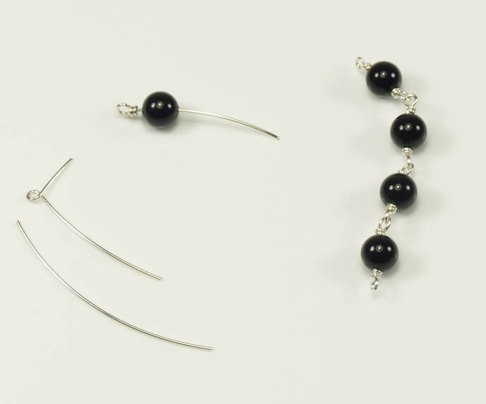 Once we have completely wrapped the first bead we then join the second loop and bead to the first bead before wrapping the loop to secure, and continue for each new bead.