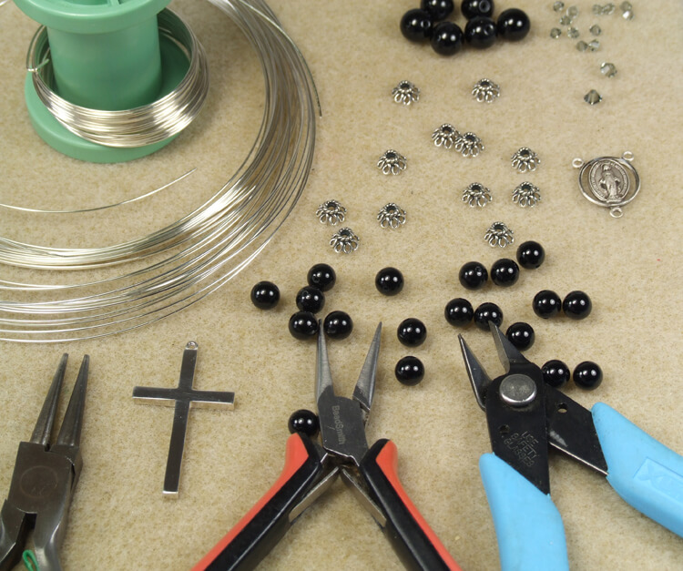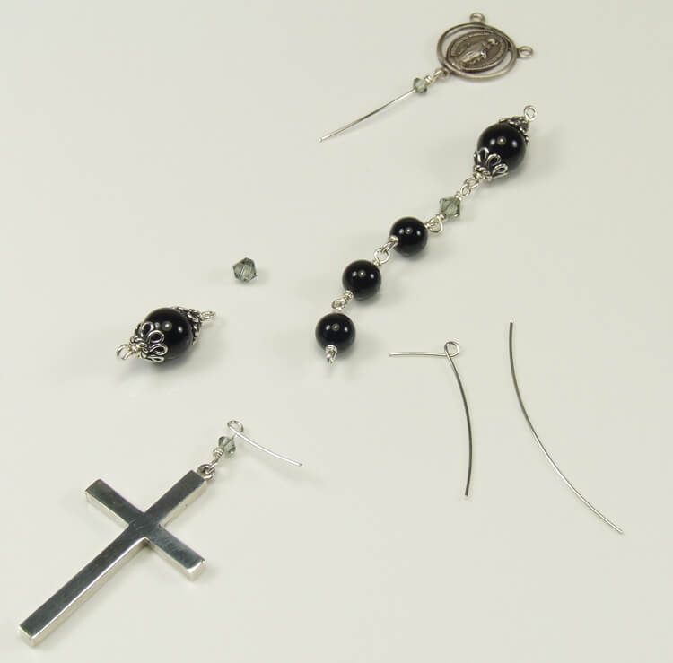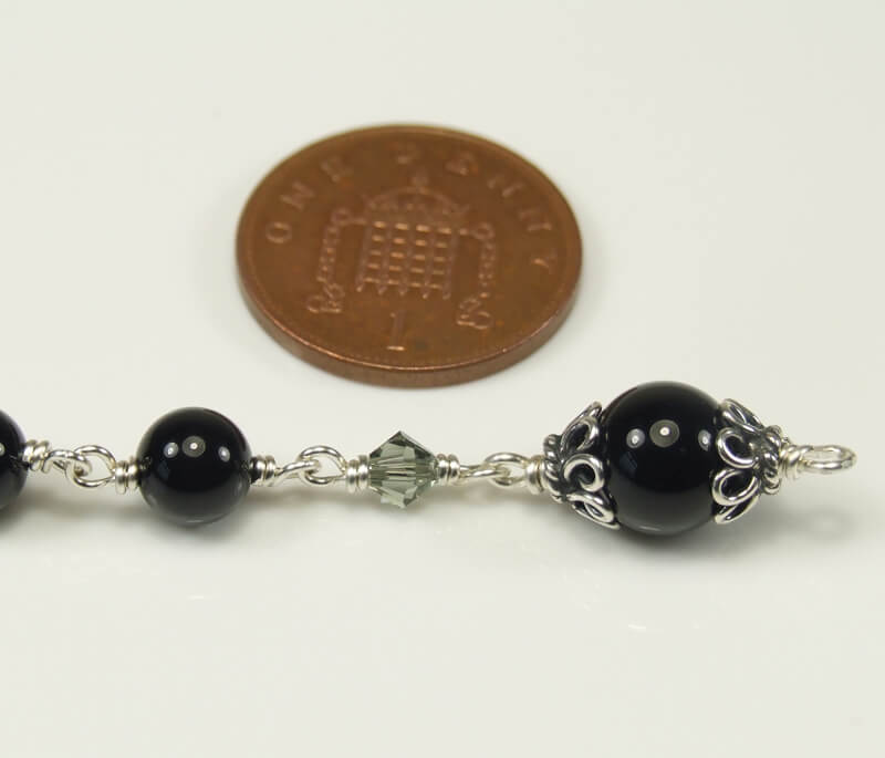 These pictures were all taken from our own workshop whilst building a black agate rosary with black Swarovski crystal spacers.