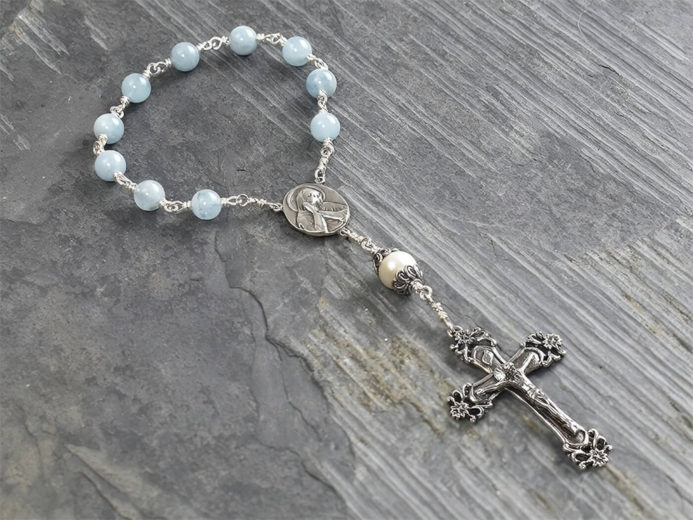 Aquamarine & Freshwater Pearl Single Decade Rosary