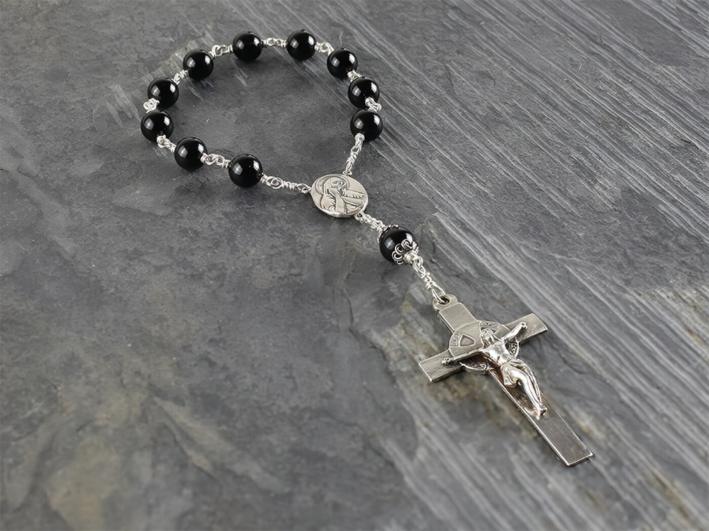 Black Tourmaline rosary built using 10mm black tourmaline gemstone beads.
