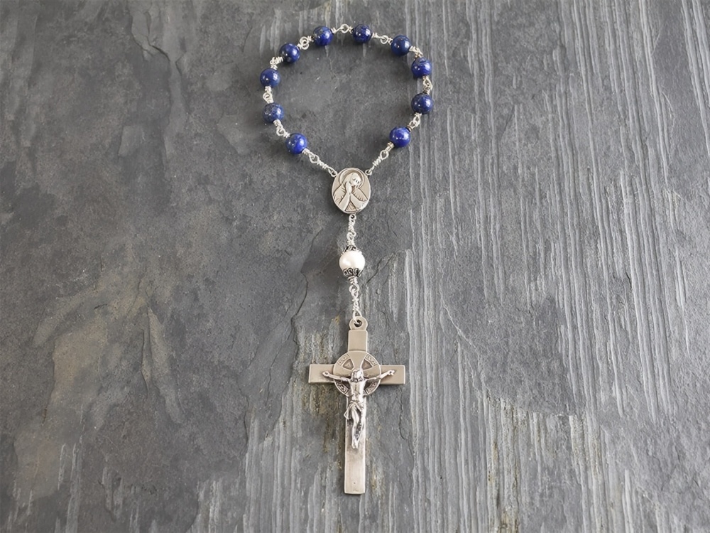 Large Lapis Lazuli & Freshwater Pearl Single Decade Rosary